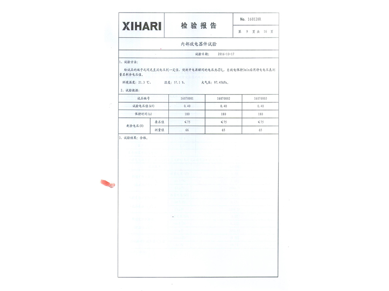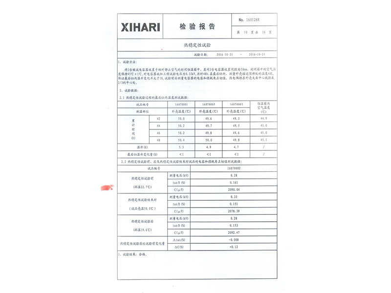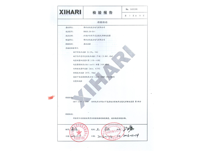報告 礦熱爐專用干式自愈式電容器型式試驗(yàn)報告