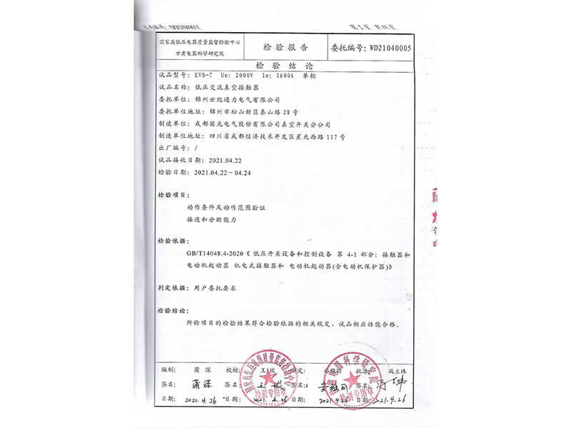 報告礦熱爐低壓無功補(bǔ)償專用真空接觸器型式試驗(yàn)報告